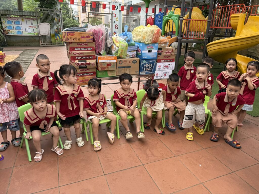 Những phần quà gồm sản phẩm sữa dinh dưỡng từ Đồng Cỏ Ba Vì, nước khoáng, mì tôm, đồ dùng học tập, quần áo và nhiều nhu yếu phẩm thiết yếu… đã được tập thể giáo viên, phụ huynh và các bé của nhà trường cùng chuẩn bị, gửi gắm trọn tình cảm, thể hiện tinh thần “thương người như thể thương thân”.